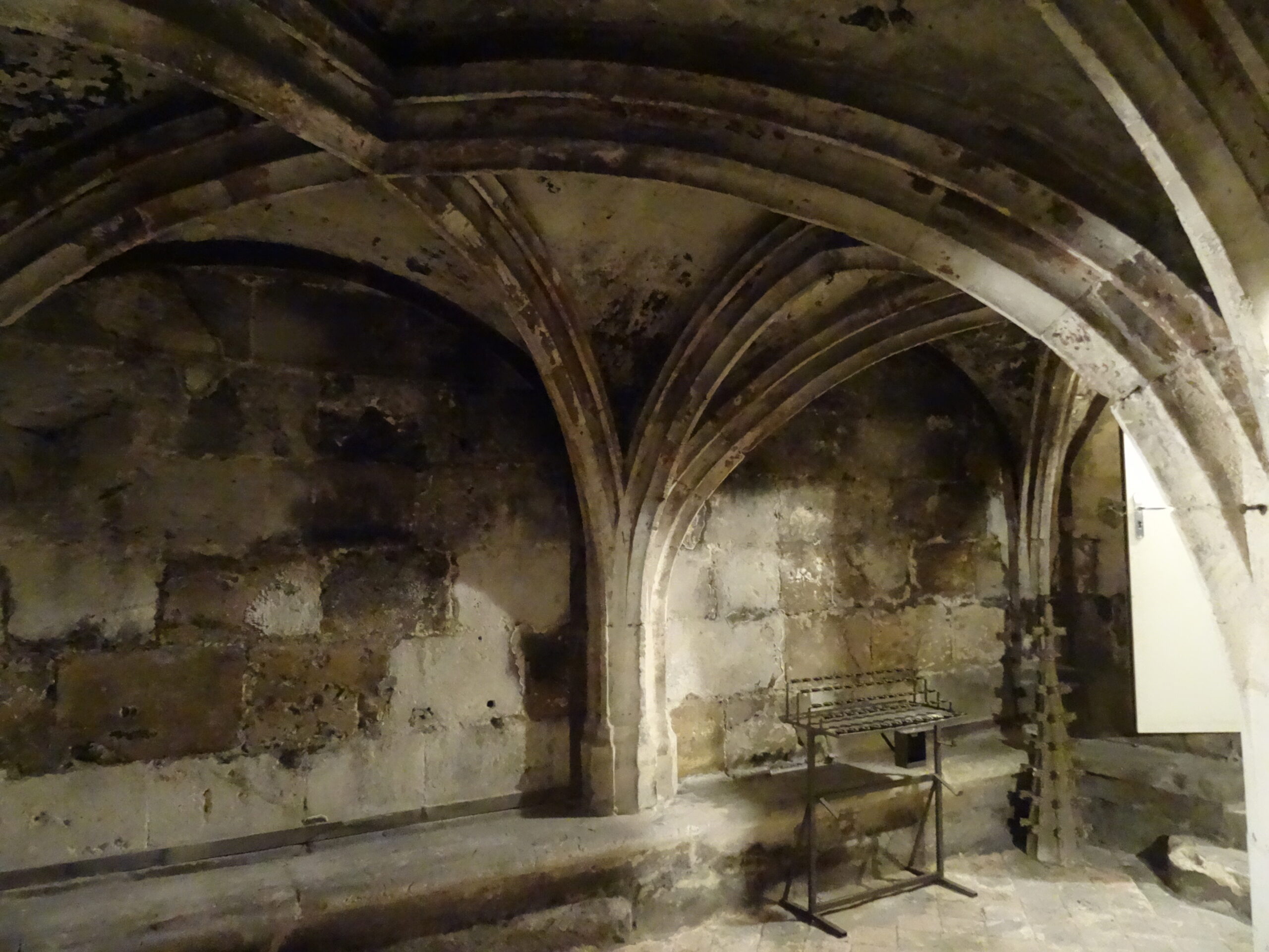 Derrière l’orgue de chœur, s’ouvre l’escalier menant à la crypte. Celle-ci est en style gothique flamboyant, voûtée sur croisée d’ogives avec un pilier central. Traditionnellement, elle était ouverte aux fidèles lors de l’office du Jeudi Saint et la messe y était dite lors de la Saint-Romain. Même si au XVe siècle, les corps de saint Godard et de saint Romain avaient été retirés depuis longtemps, le souvenir de leur présence demeurait vivace.
