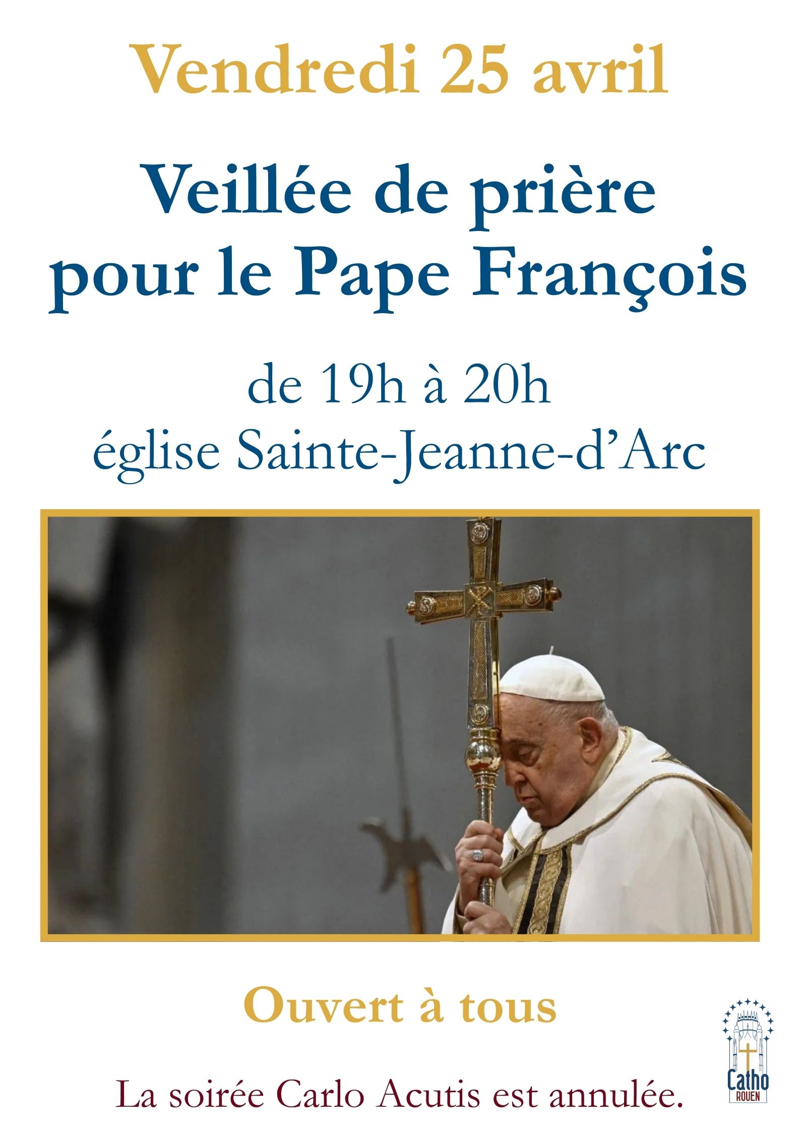 Veillée de prière pour le Pape François – Vendredi 25 avril – 19h à JDA Secrétariat CathoRouen2025-04-24T15:01:40+02:0024 04 2025|Nos actualités|